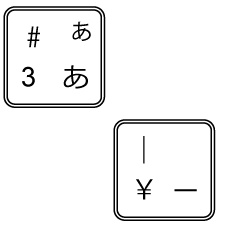 キーの左上に表示されている文字を入力したい場合は、Shiftキーを押しながらそのキーを押すことで左上の文字を呼び出すことができます。キーの右上に表示されている文字は、ひらがな入力モードの状態でキーを押すことで右上の文字を呼び出すことができます。キーの左下に入力されている文字は、半角英数入力モードの状態でキーを押すことで左下の文字を呼び出すことができます。キーの右下に入力されているひらがなは、かな入力モードの状態でキーを押すことで呼び出すことができます。