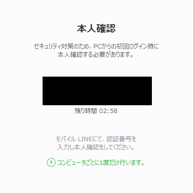 Chrome版LINEへの初回ログイン時には、本人確認を求められます。