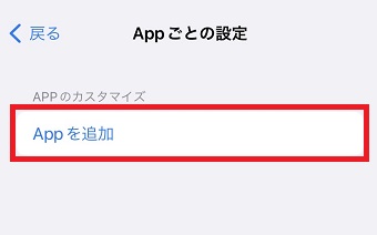 「Appごとの設定」が開いたら「Appを追加」をタップします。