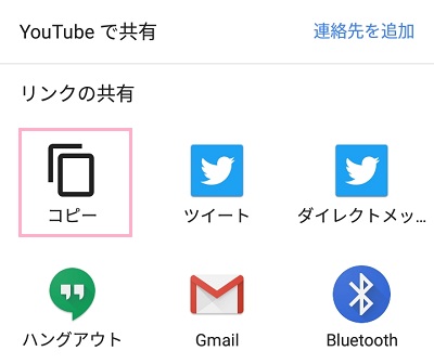 共有メニューが表示されたら、「コピー」をタップしてURLをコピーします。