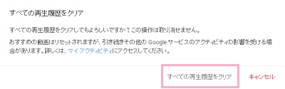 画面中央にポップアップが表示され、注意事項が表示されます。「すべての再生履歴をクリア」をクリックすれば、再生履歴が削除され、あなたへのおすすめが削除されます。