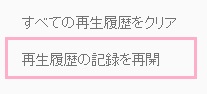 「再生履歴の記録を再開」をクリックすると視聴履歴を記録するようになるので、必要が出た時にはクリックして記録を再開するようにしましょう。