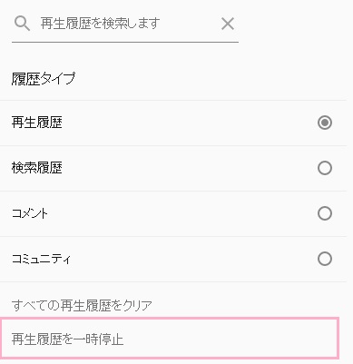 また「再生履歴を一時停止」をタップしてONにすることで、視聴履歴を記録しないようになるのでタップしてONにしましょう。