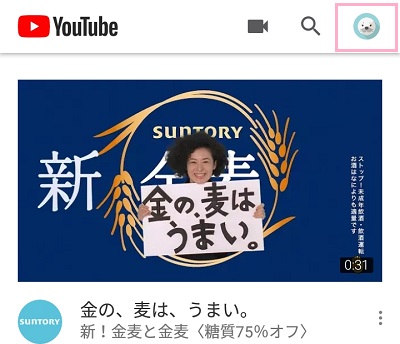 まずは右上にあるアカウントアイコンをタップしましょう。