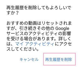 「再生履歴を削除」をタップすれば動画の視聴履歴を削除することができます。