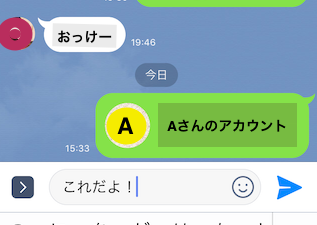 これで、自分の友達に別アカウントをに教えることができました。あとは教えた人が、友達の友達になれば友達追加完了です。スムーズにできるようになれば1分もかからず教えることのできる効率的な教え方ですね!
