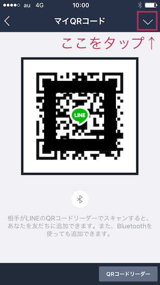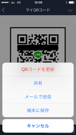 ここから友達に共有する方法が選択できるようになりますので、携帯に保存したり、メールを送ったりしてQRコードを教えてあげられるんです。