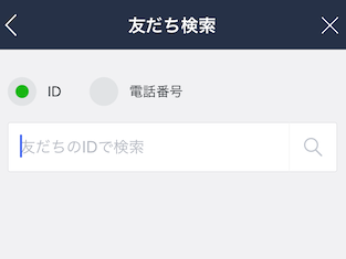すると「ID」「電話番号」という項目が出てきますので、「ID」という項目を選択して対象の別アカウントの