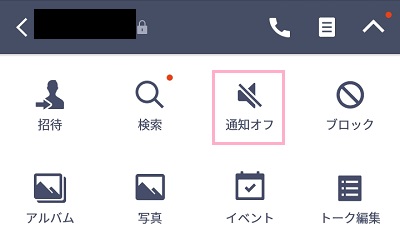 LINEは個別に通知をオンオフできるのですが、画像の「通知オフ」のアイコンが「通知オン」になっていたら通知されない状態になっています。タップして元に戻しましょう。