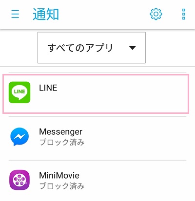設定メニューを開き、画面下のほうにあるアプリの一覧からLINEを探してタップしましょう。