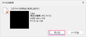 エクスプローラーでは上記の方法で一時ファイルを削除する以外にも、直接フォルダ内の容量の大きいファイルを削除することが可能です。使わないファイルを選択してから「Shiftキー+Deleteキー」を同時押しすることで「このファイルを完全に削除しますか?」と表示されるので、「はい」をクリックするとゴミ箱を経由せず直接削除することができますよ。