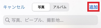 アルバムに入れたい写真を選択して右上の「追加」をタップします。