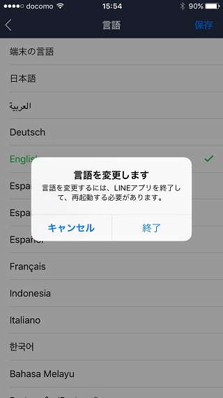 他の言語と同じように「保存」→「終了」と進むと、日本語に戻ります。