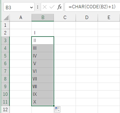 Excelでローマ数字を連番で入力する方法