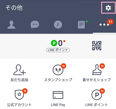 まずはLINEを起動し、その他タブの右上にある歯車のボタンをタップしましょう。