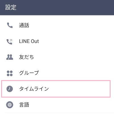設定メニューの「タイムライン」をタップします。