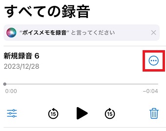 ボイスメモを起動させ、ノイズカット機能を使いたい録音をタップします。