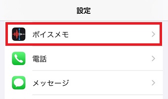 iPhoneの「設定」アプリを開き「ボイスメモ」をタップします。