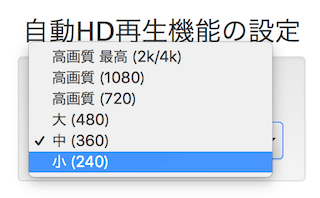 ちなみに「自動」になっている場合は読み込み速度に応じて画質が決定されます。つまり最初はHD画質で見ていた動画も通信速度の遅いところでは画質が低くなります。この場合は通信速度が速い環境(wifiなど)にかえてから動画を再生することで画質は改善されます。