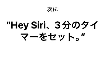 「"Hey Siri、3分のタイマーをセット。"」が開いたらiPhoneに向かって「Hey Siri、3分のタイマーをセット」と言ってください。