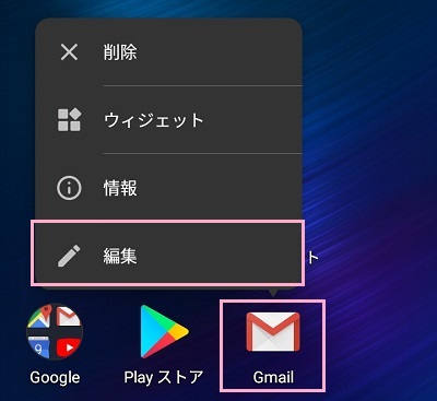 まずは、変更したいアプリをタップして長押しし、表示されたメニューの「編集」をタップします。「ショートカットの編集」が表示されるので、アプリアイコンをタップしましょう。