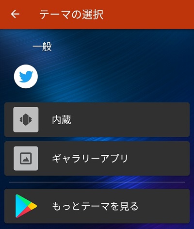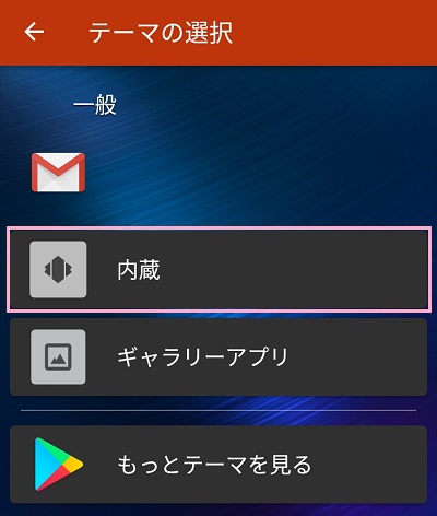 テーマの選択が表示されるので、内蔵(他のアプリアイコン)かギャラリーアプリ(保存している画像)を選択します。