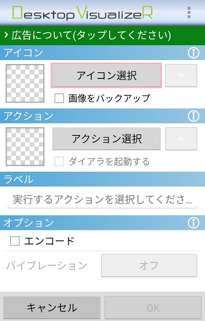 アイコン選択を済ませたら、次は「アクション選択」をタップしてどのアプリを起動するか選択しましょう。