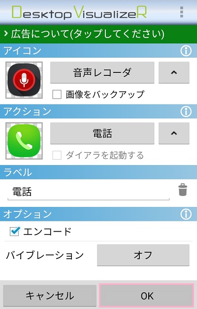 アイコンとアクションを設定し終えたら、ラベルにアプリ名を記入して「OK」をタップしましょう。ホーム画面にアイコンが作成されます。