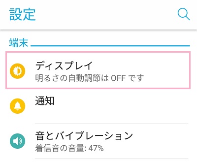 フォントを変更するには、設定メニューの「ディスプレイ」をタップしましょう。