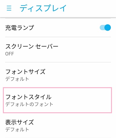 ディスプレイメニューの「フォントスタイル」をタップします。