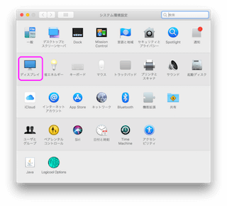 「システム環境設定」を開き、「ディスプレイ」を選択しましょう。