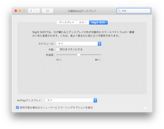 このOS以降のバージョンを搭載しているMacであれば、night shift(ナイトシフト)を利用することができます。
