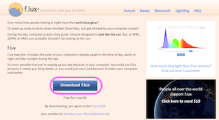 画面中程にある、「Download f.lux」をクリックしてアプリをダウンロードしましょう。