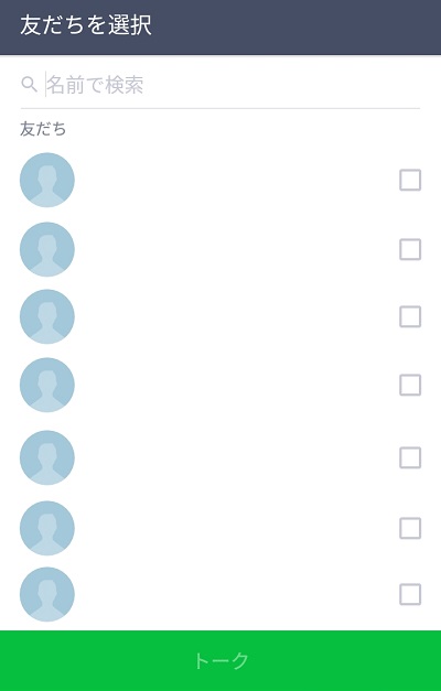 「友だちを選択」画面が表示されるので、トークに追加したい友だちをタップして選択しましょう。複数名選ぶことも可能です。