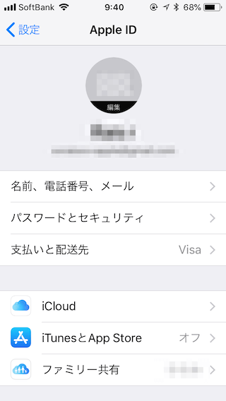「設定」から「Apple ID」をタップしてiCloudの設定に入ります。