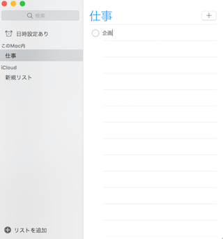 リマインダーを追加したいリストを選択し、右上にある「+」もしくは最初の行をクリックすると、タスク内容が入力できます。