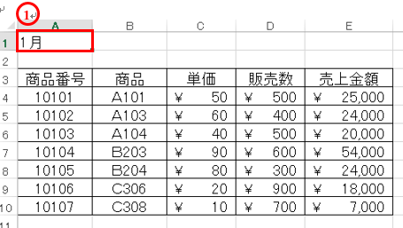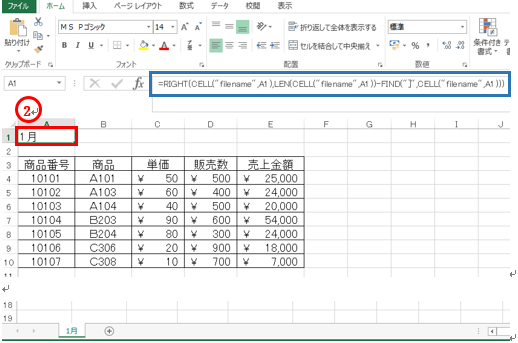 例えば月毎にシートを管理していくうえで、毎回、赤枠①のように各月を入力していては手間がかかりますよね。
