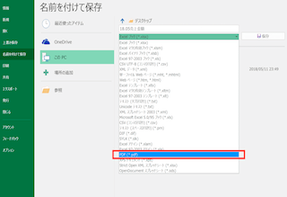 ドロップダウンされたリストから「PDF(*.pdf)」を選択してクリックします。