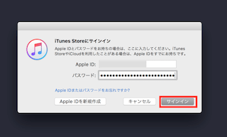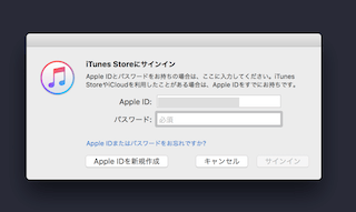 「iTunes」を開き、メニューバーの「アカウント」から「サインイン...」を選択します。