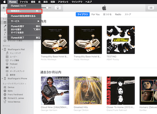 iTunesで「ライブラリ」パネルに戻ります。