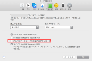 「環境設定」の「ストア環境設定パネル」を開き、「アルバムアートワークを自動的にダウンロード」のチェックボックスにチェックを入れます。
