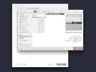 「アートワークを追加」ボタンを押すと画像を選択するウインドウが現れますので、画像を選択し、「開く」ボタンを押します。