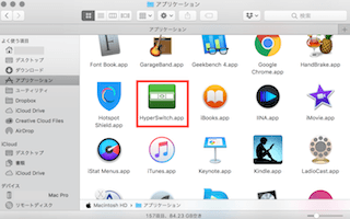 アプリケーションフォルダにコピーされたHyperSwitchをダブルクリックします。