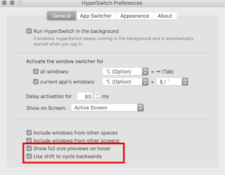 - 「Show full size previews on hover」では、option + tubでウィンドウを切り替え中にフルサイズで画面に表示がされるようになります。