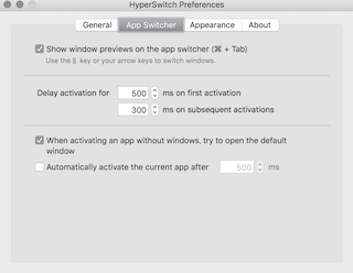 「HyperSwitch」の環境設定のGeneralパネルの設定では下記の2点がおすすめとなります。