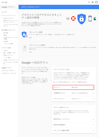 gmailのパスワードを変更したい
