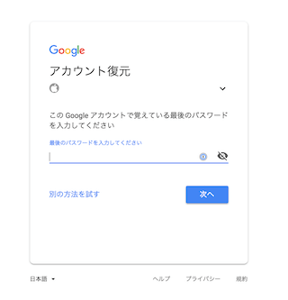 覚えていない場合は「別の方法を試す」をクリックします。