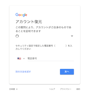 再設定用の電話番号を設定している場合はそちらを入力します。
