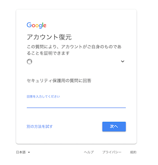 回答を忘れた場合は「別の方法を試す」をクリックします。
