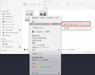 「このアプリケーションで開く」の「Font Book.app(デフォルト)」をクリックします。